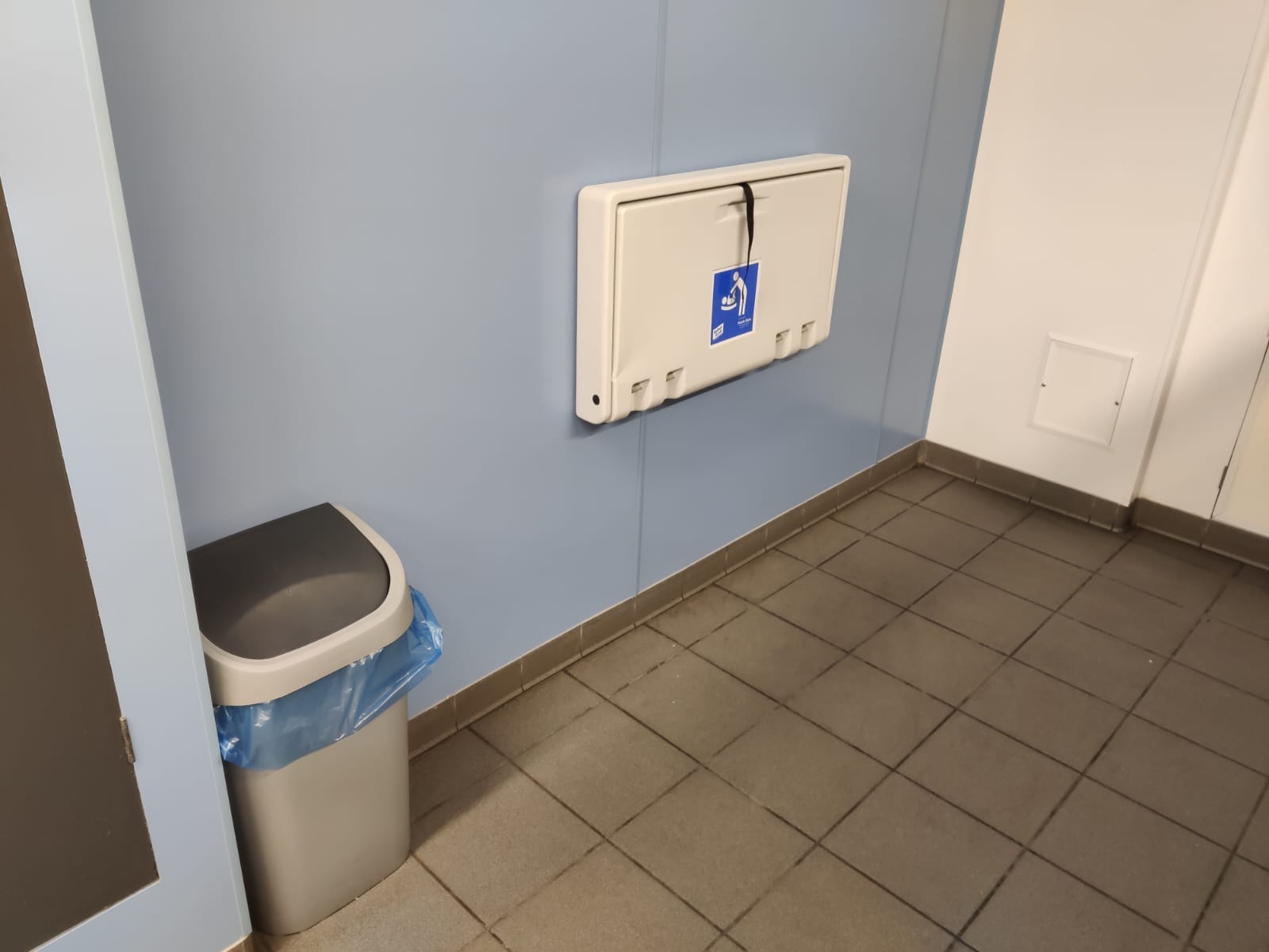 Access is available via a ramp, and there is lots of space once inside to park a pushchair whilst you are using the baby change facilities. Note that there is no baby change in the male toilets next door.