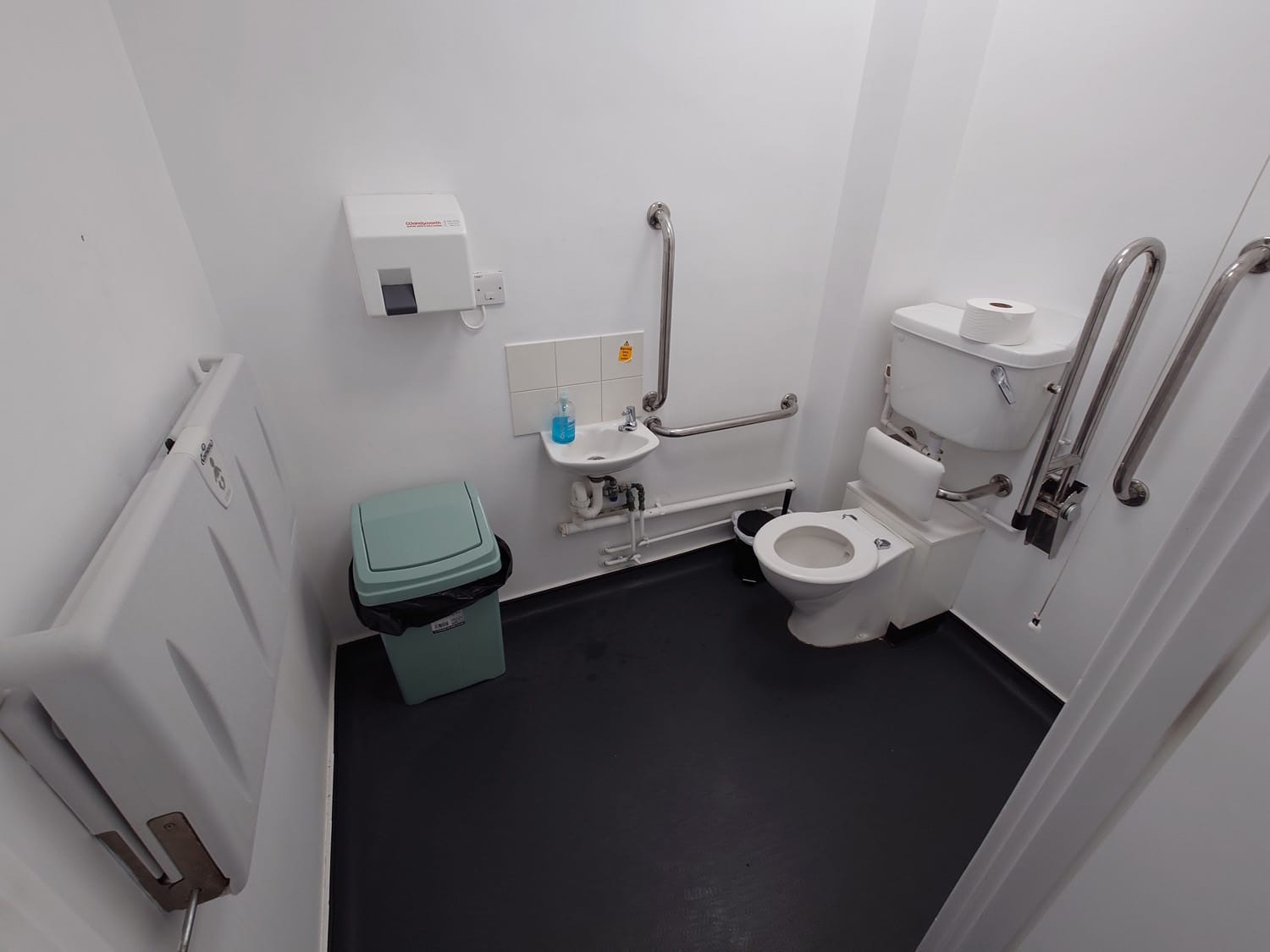 The baby change is shared with a unisex disabled toilet and although it is quite small it is still reasonably well equipped with a fold-down changing table next to a well-placed bin.
