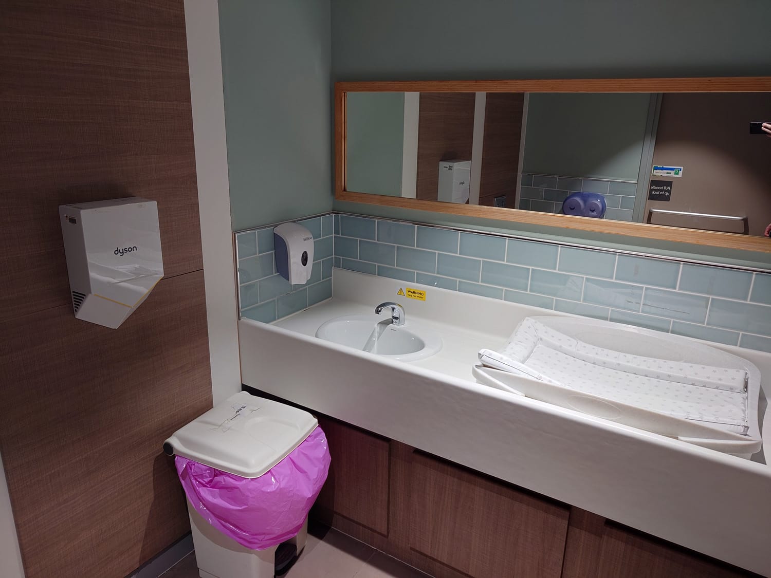 There is a dedicated baby change room available with plenty of space for a pushchair, place to put your changing bag next to the mat and a sink in easy reach.